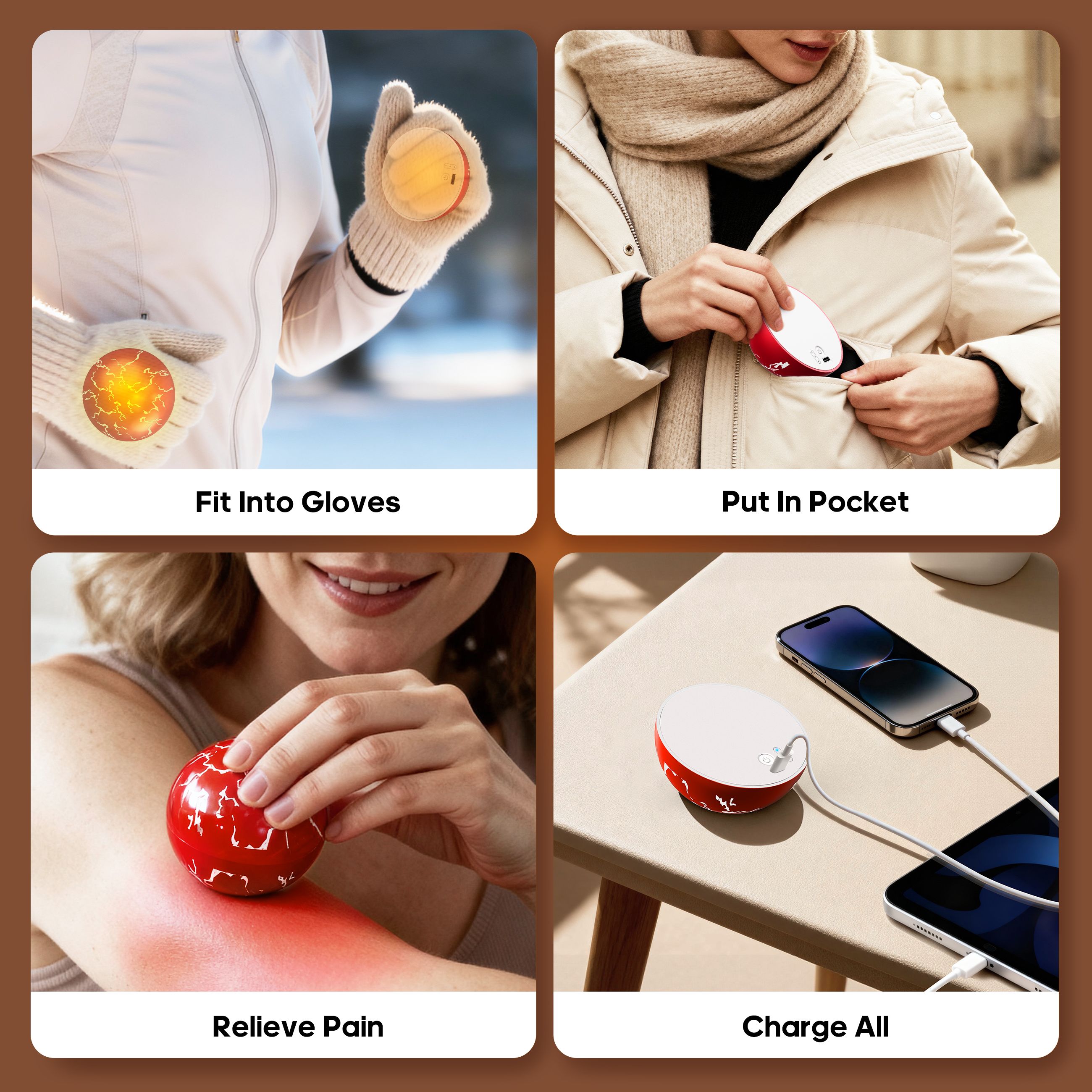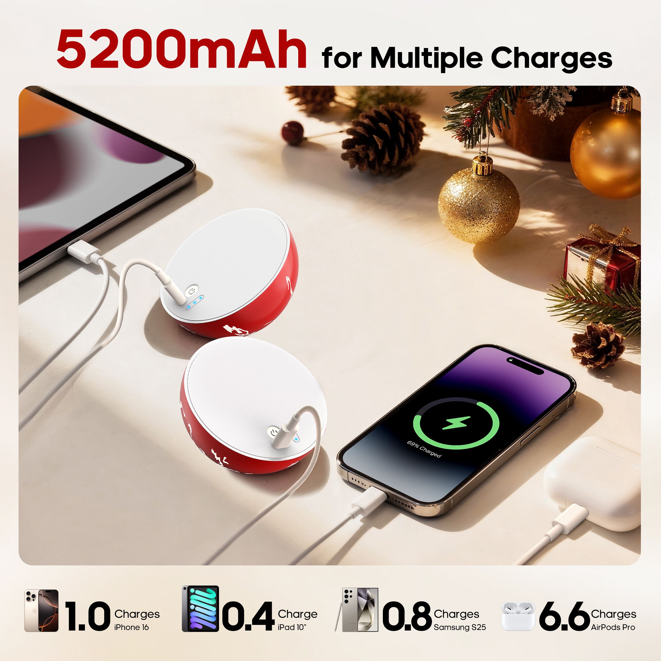 Hand Warmers & Power Bank,Magnetic Electric Handwarmer,2 Packs Electric Portable Pocket Heater with 3-Colors Light,USB-C Portable Charger 5200mAh,Gifts for Women Men Outdoor Camping Hunting Golf